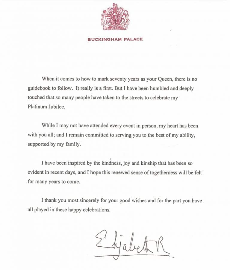 Thank you message to the nation from the Queen for helping her to celebrate her Platinum Jubilee 5 June 2022